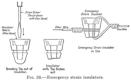 EMERGENCY STRAIN INSULATORS: These can be made by knocking the end out of