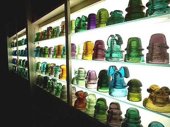 clearly see many more insulators displayed in the windows of the old store that