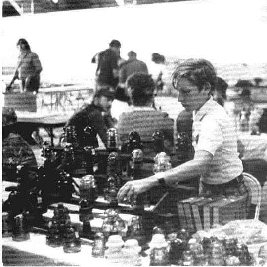 article show Dave managing his sale table at various shows in the early and late