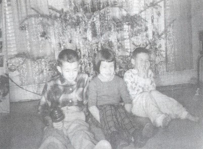 A few days after Christmas 1960, Joe poses with his sister and brother by the