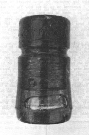 out of the ground came flying a big green chunk of glass. It landed at least