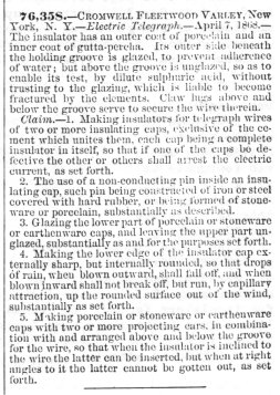 drawings for 1868 1st half, but the patent text indicates insulator made in