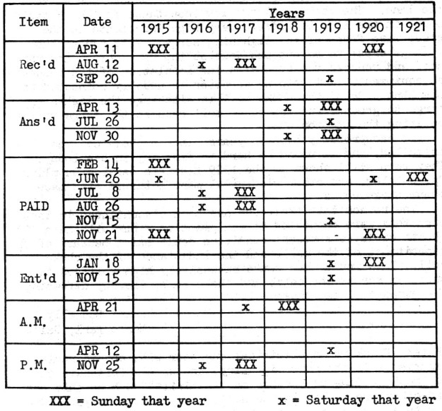 work dates were probably not Sundays, and also maybe not even Saturdays. The