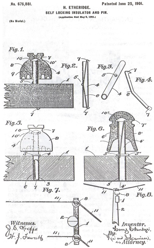 it may be related to the Etheridge patent 676,881 granted on June 25, 1901,
