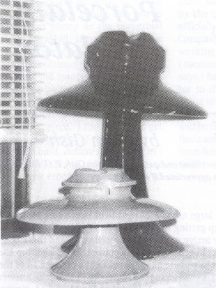 one in his collection. Bill's insulator is cemented on a Smith-grip pin. This