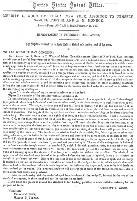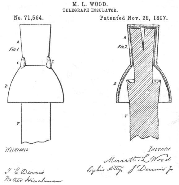 patent No. 71,504, dated November 20, 1807. IMPROVEMENT IN TELEGRAPH-INSULATORS.