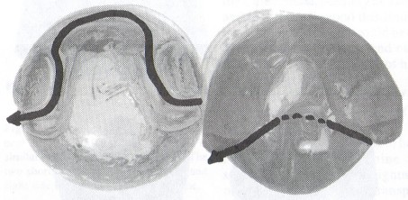 (right) from a view looking down at the two dome tops. In Fig. 7, a black line