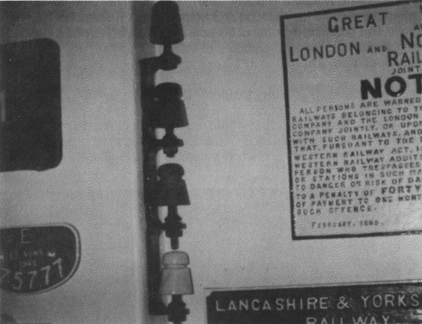 LNER line. White porcelain insulators smoke-stained as found. (Bottom row, left