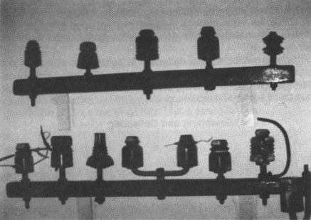 rare sight in 1990 -- three Fuller/Langdon patent corrugated insulators