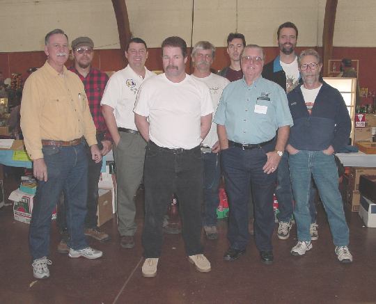 (center) picks a couple choice insulators off Larry's table.
