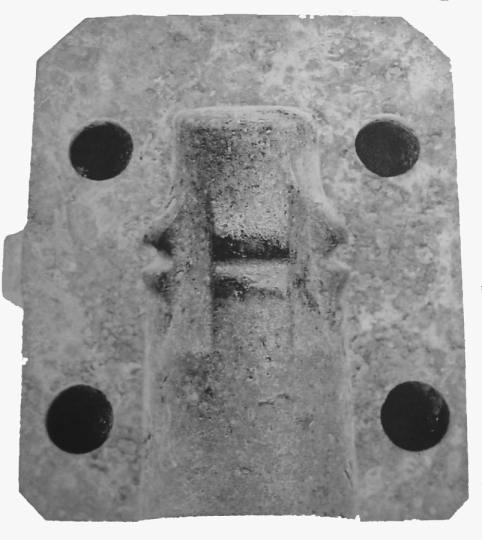 Exterior and interior views of half of a mold apparently used in the