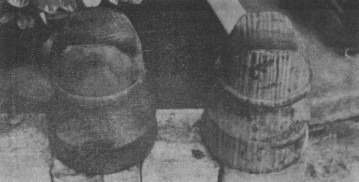 two wooden insulators. Both are threaded on inside. Not much is known of their