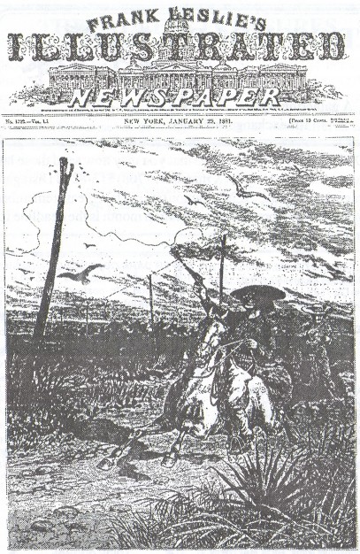 Indulging in Revolver Practice on Telegraph Line." "The problem must