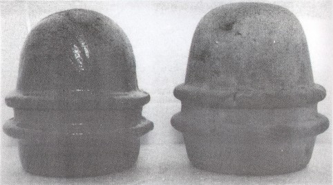 non-porcelain list. On the left is a three part, composition insulator, similar in