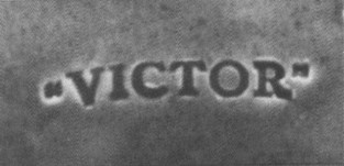 shown in the photograph below and is simply: "VICTOR". Note that this