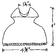 It is blue green with with dimensions. sharp drip points. Below is a drawing