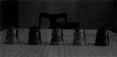 This sketch, from an 1869 picture, shows a pole with two crossarms with rams