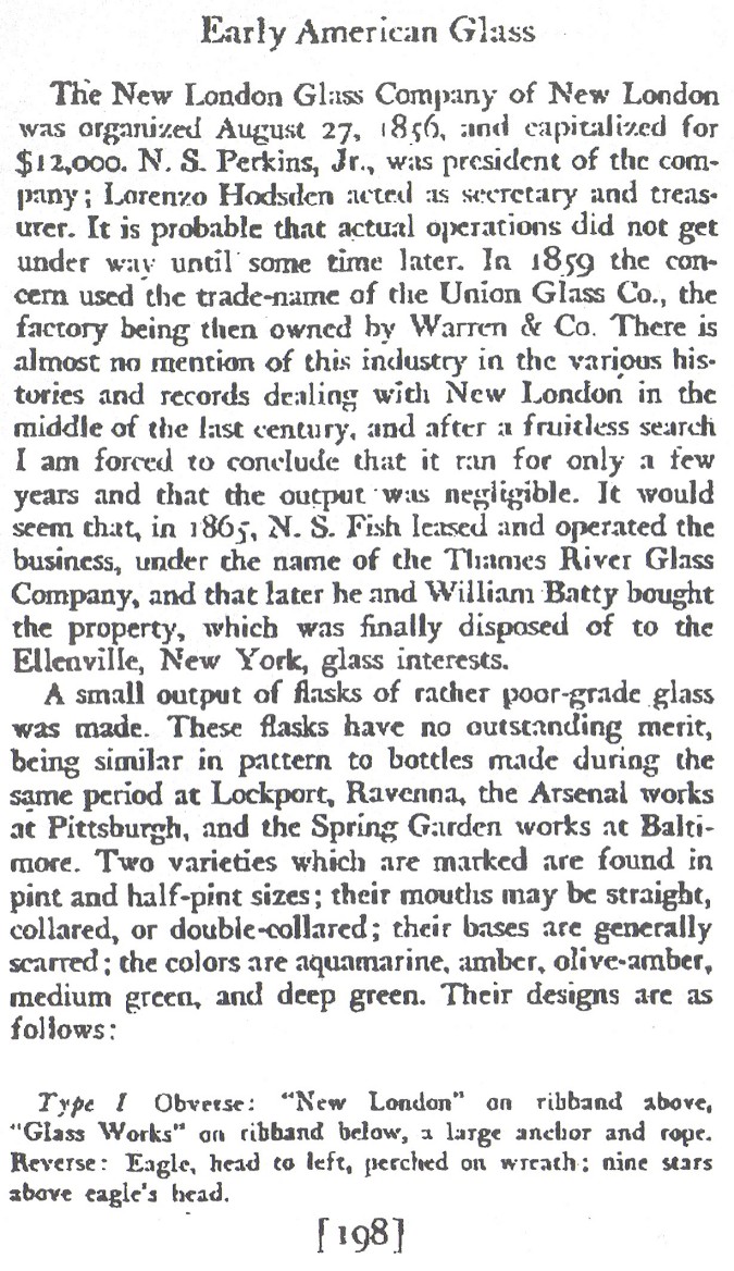 facts have disputed some of Mrs. Knittle's statements: The original name was NEW LONDON GLASS COMPANY; then UNION GLASS COMPANY; then THAMES GLASS WORKS