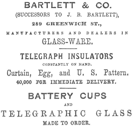 Greenwich Street. Bartlett states in an ad that they were manufacturers and