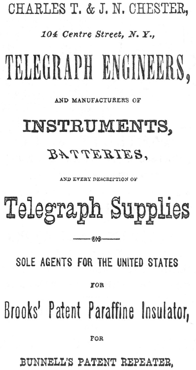 telegraph equipment supply company formed in the mid 1850's in New York City.