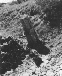 down from the bank above into the cut, we can see a rail which has sunk at least