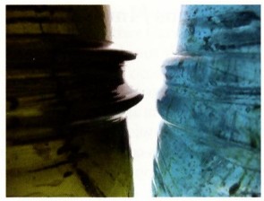 Other than the unique barrel shape, these glass artifacts are defined by