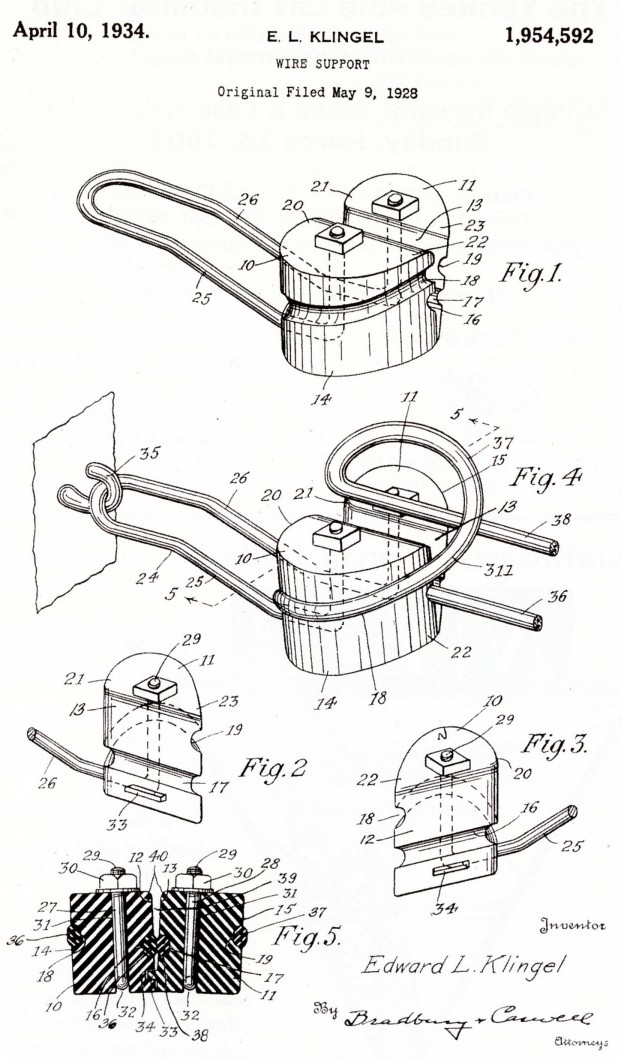 patent #1,954,592 was issued on April 10, 1934 for a "Wire Support."