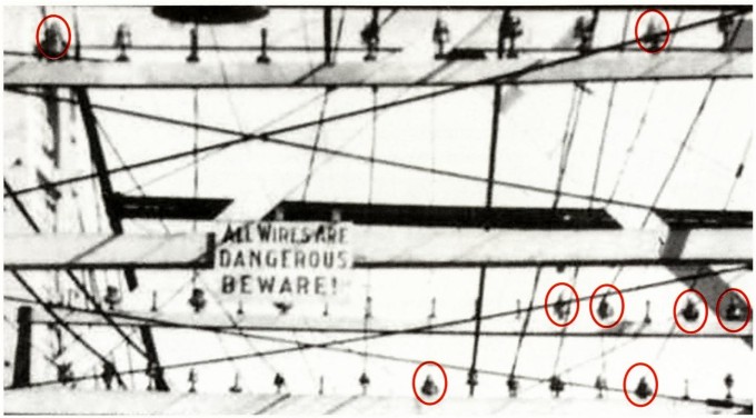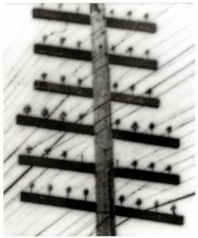 So what kind of insulators were they? Think about it, the cable groove used in so many power insulator styles wasn't patented until June 17, 1890... so you can rule out all of those styles. Determining insulator shapes from old photos can be difficult, but in the coming pages this article supports what many collectors have suspected for decades. It appears at least some of the insulators used are among the rarest in the hobby.