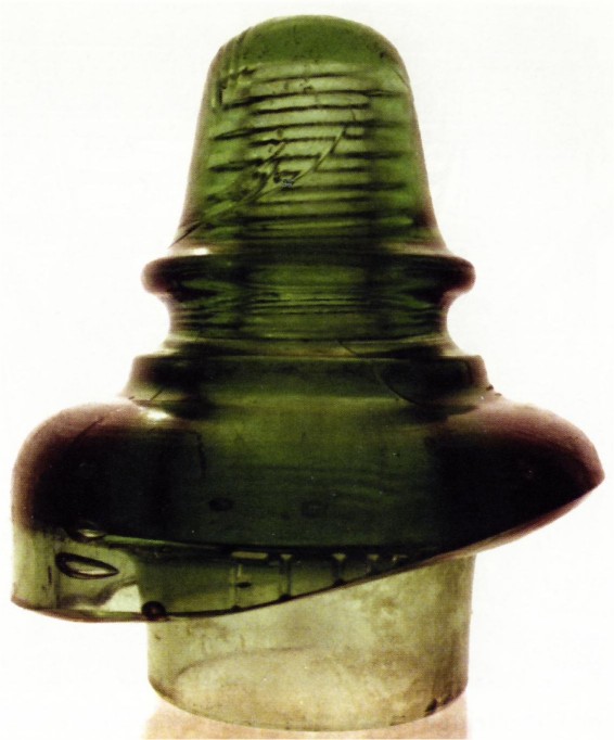 This Fluid Insulator (above) made quite a stir in the hobby I just a couple of years ago when it showed up on eBay. The National Insulator Association web site describes the event as follows: "A couple of non-collectors purchase a CD 180.5 Fluid Insulator for a few dollars, list it on eBay and sell it for over $10,000. The wire services pick up the story and the hobby sees an upswing in requests for appraisals, hits on insulator web sites, and more insulators listed on eBay, often with outlandish starting prices. The auction was mentioned on the "Paul Harvey" radio program!" So - great an interest in the hobby resulted from this eBay sale, that the number of subscribers to Crown Jewels magazine increased by almost 50 in the following two months. The insulator had been purchased in a shop on the Oregon Coast, about a hundred miles from Portland. Whether that insulator has any connection to Portland is unknown.