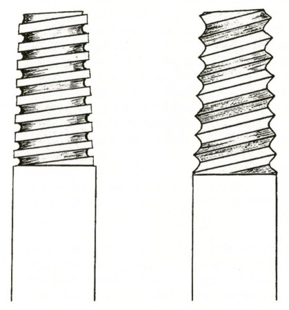 single threaded pin on the left. The theoretical double threaded pin is shown on