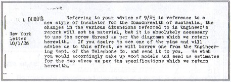the thread cavity. From a letter dated Sept. 25, 1928: