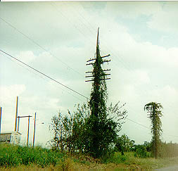 weeds around the crossarms for insulators, keeping a sharp eye out for water