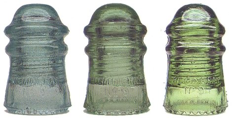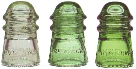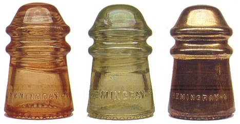 embossing [250] Hemingrays. The insulator on the left of this group of three is