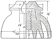 styles of multipart insulators. These were characterized by downward arcing top