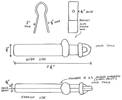 22 in small raised embossing on one side near the glass collar for the bracket.