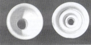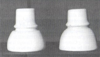 left has a normal pin hole for this size insulator, but no inner skirt. The