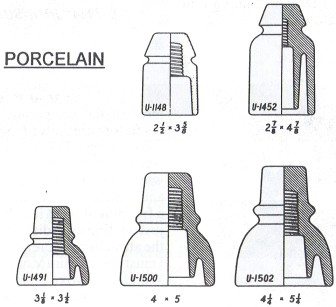 several interesting porcelain insulators, including a putty colored U-1500 with
