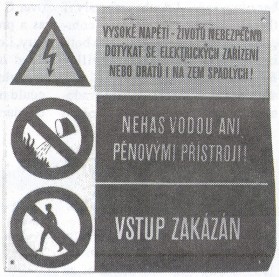ELECTRICAL EQUIPMENT"; the middle section says “DO NOT QUENCH WITH WATER”;