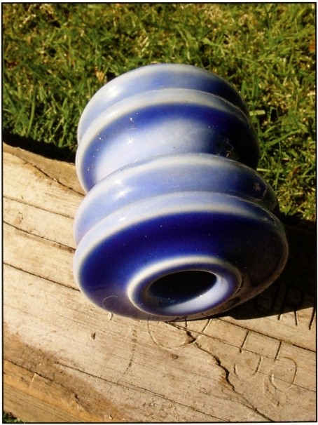 favorites. He found this blue porcelain dead-end spool on the roof of an old