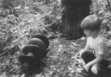 thick brush, I discovered an overgrown road leading downhill into a large, deep