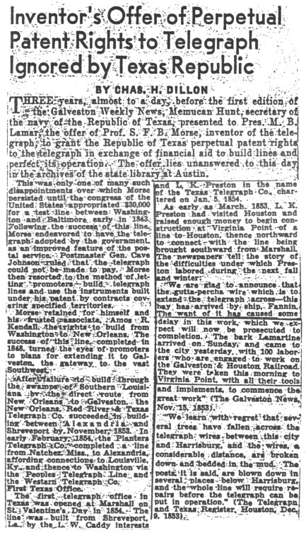of the Texas Telegraph. I logically started searching in Galveston. There in the