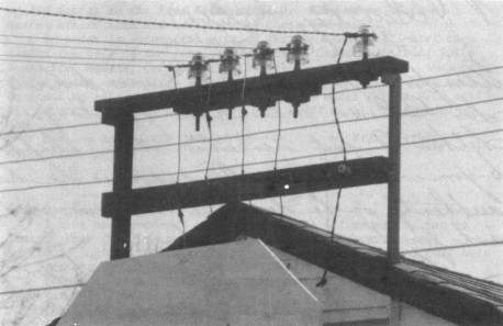 garage originally had porcelain screw-spike insulators near the peak of the roof