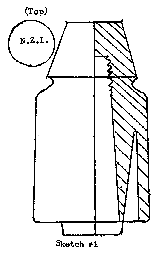 Sketch number two gives the appearance of a modified Hemingray 109. It has no threads, is glazed brown, comes in at least two sizes (3-3/4"x2-3/4"; 2 -3/4x2") and has N. Z. stamped on the upper lip.