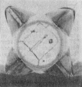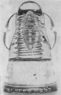 made in a 2-piece mold (mold line over dome). The peculiar shape of the