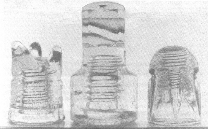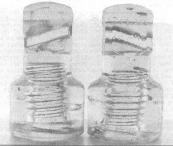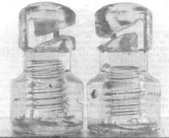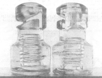 Fig. 7 - Insulator at left shows the angled slot for the entrance