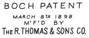 Markings on it state BOOM or BOOR (not clear) PATENT, MARCH 8th 1898, M' F' D