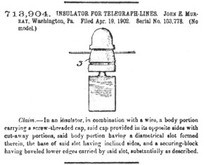 713,904. INSULATOR FOR TELEGRAPH-LINES. JOHN E. MURRAY, Washington, Pa. Filed