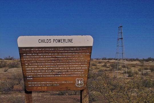 transmit power from the Childs hydroelectric plant twenty miles east of here to