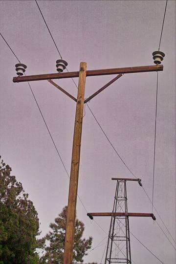 Carver is muttering some choice unprintable comments about anyone who would tear down a steel tower line and replace it with wood poles. There is