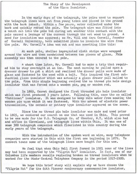 insulators, threadless uses in Ohio, and naming them after the "Pilgrim